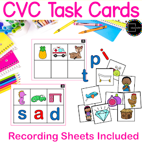 – Task Cards – The bundle offers 80 task cards specifically designed for CVC Short Vowels. These task cards provide an interactive and versatile way for students to practice phonics skills independently, in small groups, or during literacy centers. Students will engage with tasks such as identifying beginning, middle, and ending sounds, blending sounds to form words, and more.