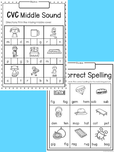 – Mixed Vowel Activities- In addition to the individual short vowel worksheets, the bundle also includes mixed vowel activities. These activities focus on the middle sound, correct spelling, writing CVC words, unscrambling words, and picture searches. By exploring mixed vowel activities, students can reinforce their phonics skills and enhance their ability to decode and read a variety of CVC words.