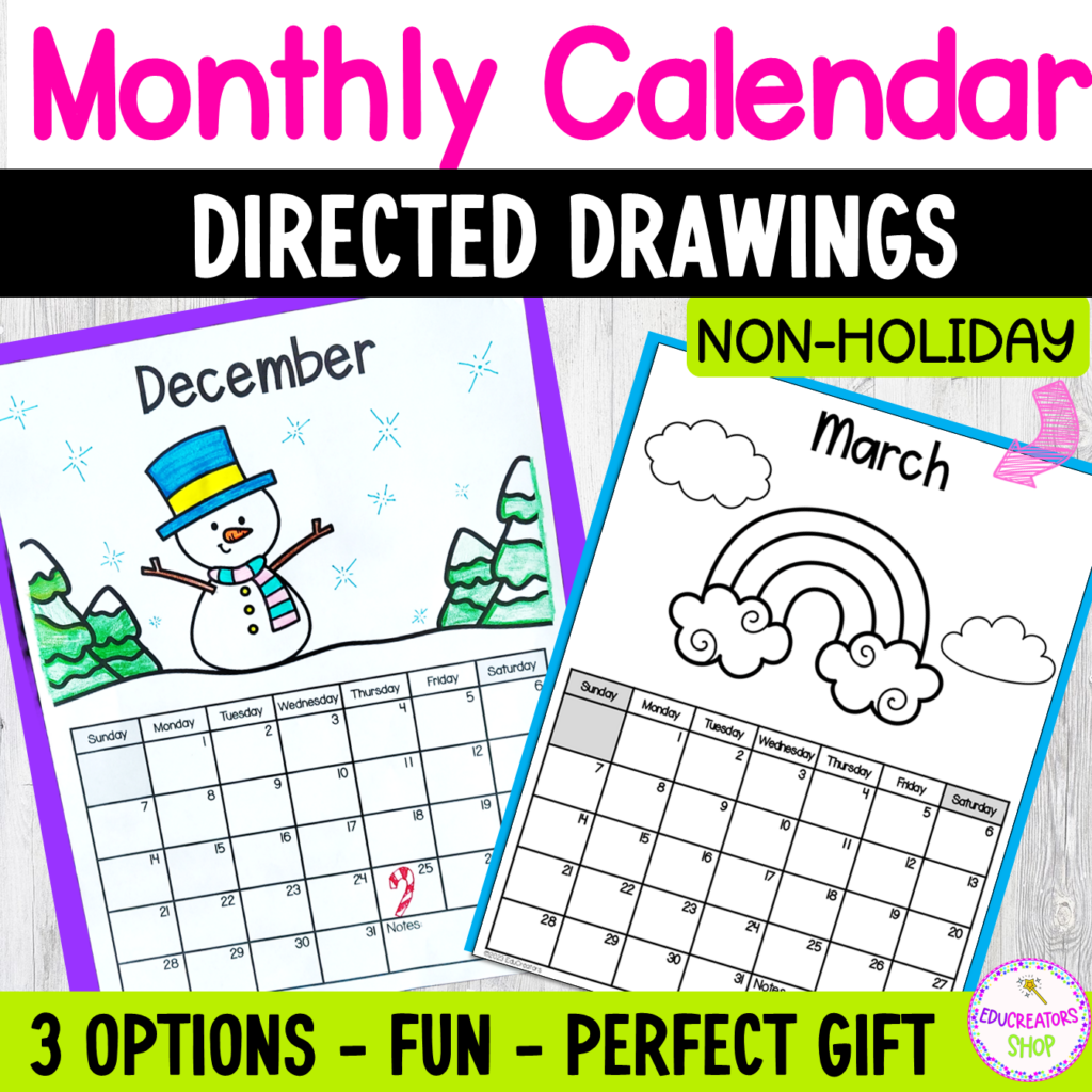 This Monthly Directed Drawing Calendar resource is the perfect fix for that tricky holiday or end-of-year craft dilemma. It takes the stress out of creating an impressive, unique parent gift that seriously becomes a treasured item. Think of it—a whole year of your students’ artwork displayed proudly!